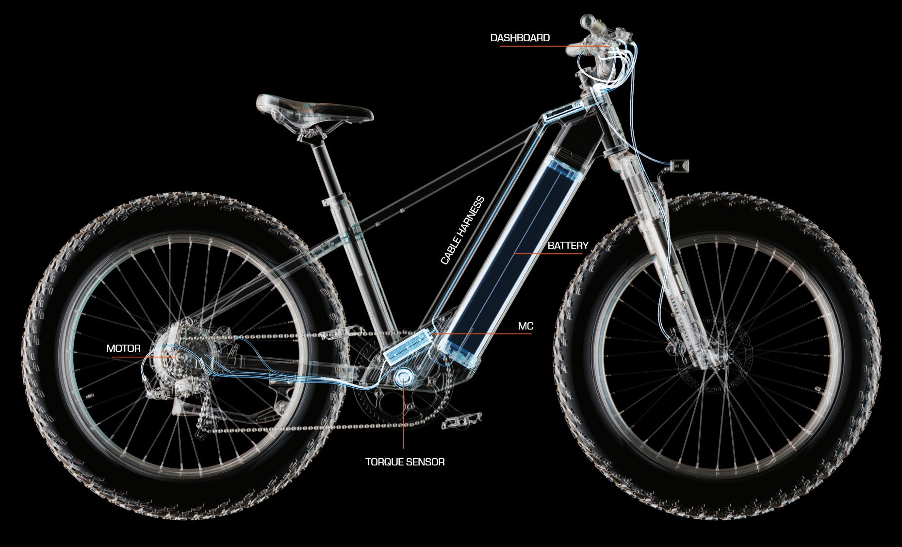Roulez sur n'importe quelle surface grâce à la suspension et aux pneus 26" * 4,0" du Zenith. Qu'il pleuve ou qu'il neige, n'ayez crainte. Le vélo est étanche selon la norme IPX5 (certaines pièces sont étanches selon la norme IPX7).